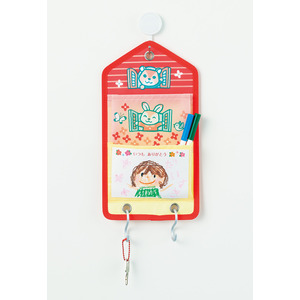おうち型のウォールポケットです。透明ポケットに子どもがかいた絵やメッセージを入れてプレゼントできます。フックなどを使って壁に掛けられます。また、下部の穴にはフック(別売)などをかけられます。製作用紙が付いています。