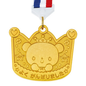 かわいいかんむりの形のメダルです。くまさんのレリーフが入っています。金属製(アルミニウム)なので本格的なメダルの質感があります。