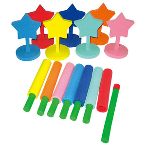 カラフルなスポンジ製の安全な水てっぽうで、プールに浮かべた的を狙います。水流を起こすと的が動き、さらにおもしろくなります。