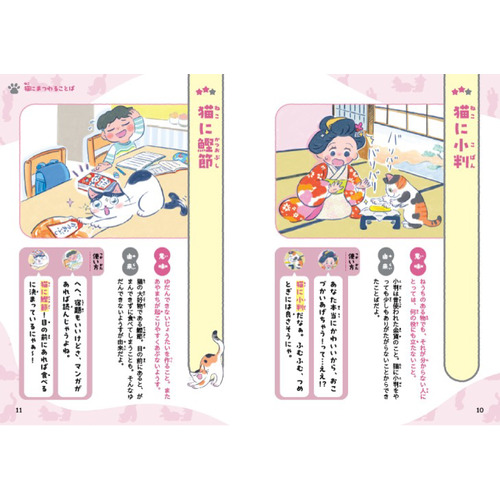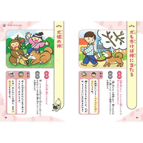 ・ことばページは、ひとめで意味や由来がわかるイラストとともに、