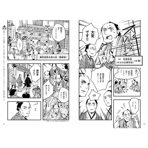また、ページ欄外の「まめちしき」で、作中に登場する作家・浮世絵師たちのエピソードや、