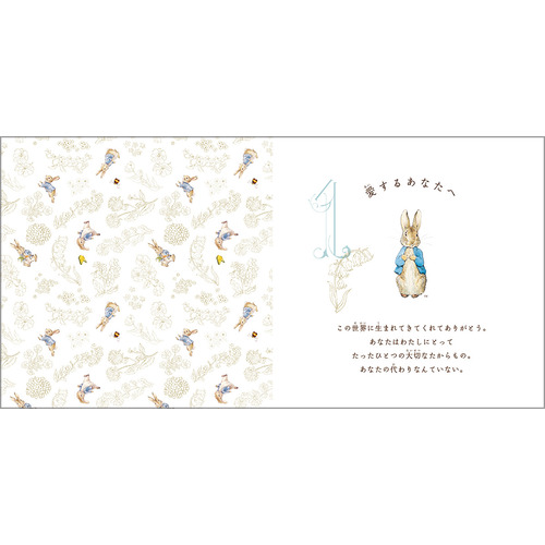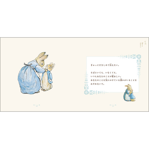 ピーターラビット(TM)やこねこのトム(TM)など、かわいらしいキャラクターのイラストをふんだんに使ったメッセージ絵本です。