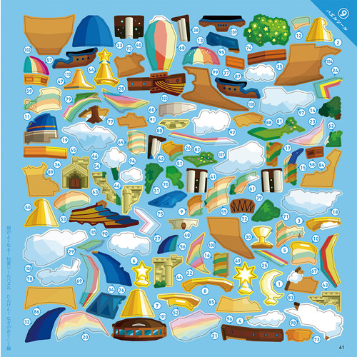 パズルができあがったら、同じ絵柄の「アイテムシール」を「たんけんの ちず」に貼ってオリジナルの地図を作りましょう。