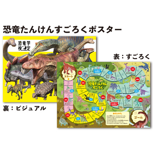 恐竜に関する検定試験「恐竜学検定」の公式ガイドブックの特典つきセット。初級と中級の対策問題と解説を計230問収録。特典は、お子さまのはじめての受検にも安心の「練習用マークシート」や、遊びながら学べる「すごろくポスター」など。【サイズ】A5 140ページ