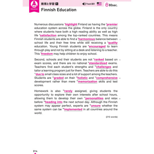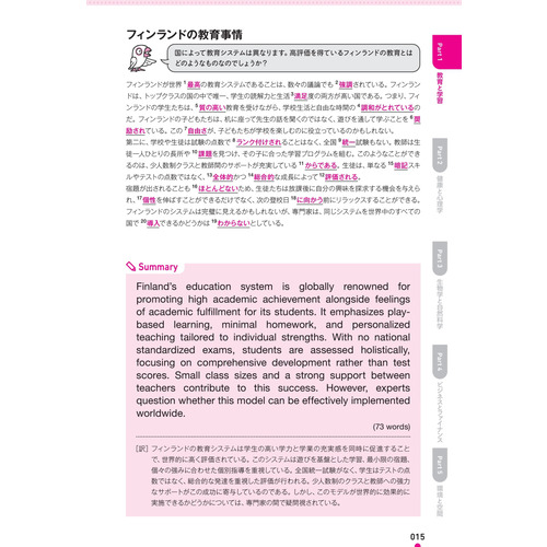すべての長文パッセージに要約を掲載。自分で要約にチャレンジするコーナー付き。要約に必要なパラフレーズ表現も学べる。