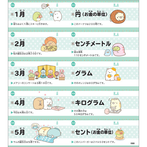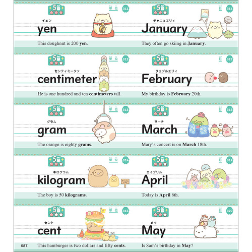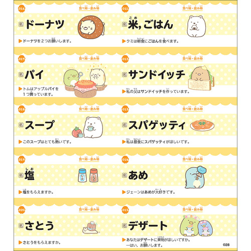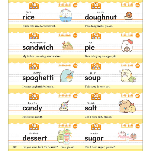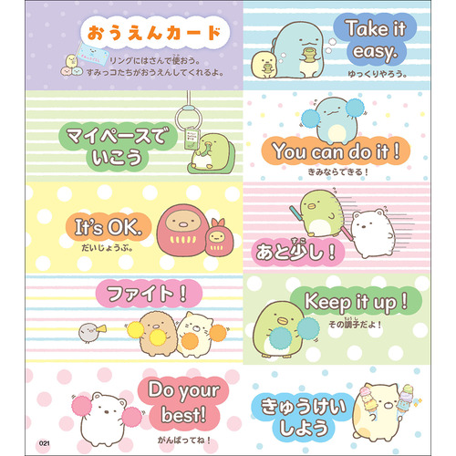 ★ すみっコたちの絵でまとめて頻出単語などを覚えられるまとめシート8種類付き。