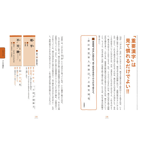漢文受験参考書ナンバー1ベストセラーが、共通テスト本番の試験に対応して新登場。暗記を最小限にし、「漢文に慣れること」を重視した点が多くの受験生に支持され、約30年のロングセラーになっている。共通テストや入試の対策を万全にできる別冊つき。【サイズ】A5 310ページ