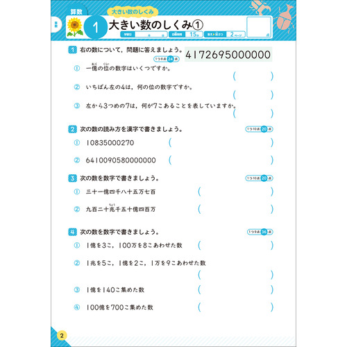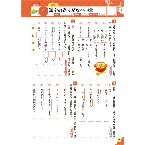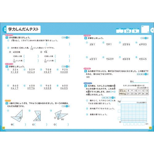 ・算数と国語には、最後に「学力しんだんテスト」がついています。力だめしと弱点克服に役立ちます。