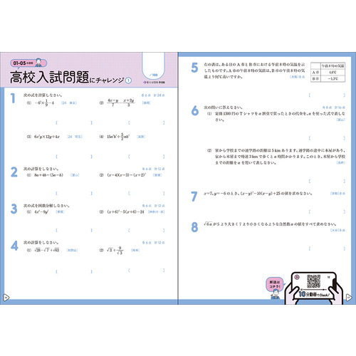 「高校入試問題にチャレンジ」全5回、「実力判定テスト」全1回付き。