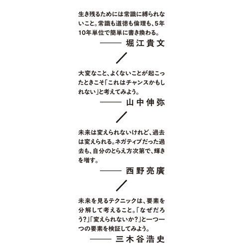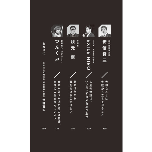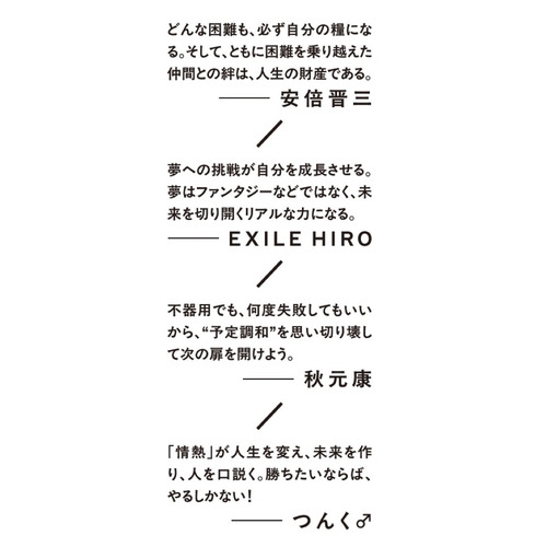 各界で活躍するトップランナー8人が贈る【15分の心に刺さる言葉】を詰め込んだ1冊は、老若男女を問わず「ここから一歩」を踏み出そうとする人たちの力となり、そして、失敗を恐れて踏み出せずにいる人たちの背中を押す金言集です。