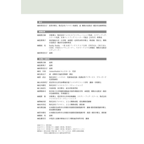 動物介在介入の現場で必要な知識や技術と各専門職の役割を解説し、この分野に興味を持つ人、現在活動に従事している人、そしてこれから取り組みたい人、導入したい施設の人にも必携の一冊。多くのイラストや写真、動画で展開し、実際の現場がわかる!【サイズ】B5 200ページ