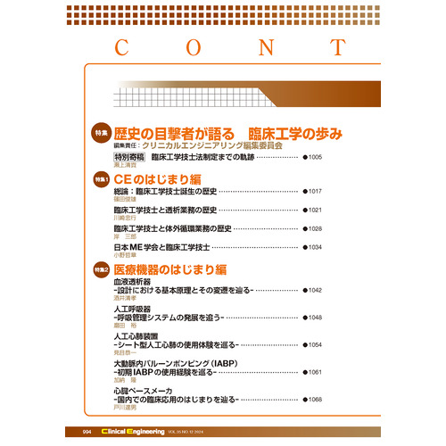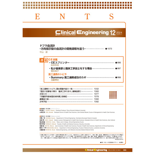 【内容紹介】クリニカルエンジニアリングの創刊35周年を記念して、「臨床工学技士」と「医療機器」のはじまりをたどる特別2大特集号。その当時を知らない臨床工学技士に向けて、創成期の臨床工学技士の活躍や医療機器の開発経緯などを伝承する1冊。
