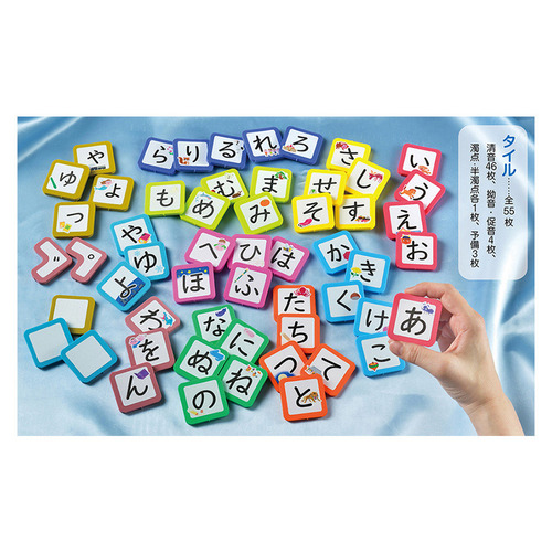 ■音読できるかな?……お子さまの発達や成長によっても違いますが、3歳頃を目安に始めます。「タイル」を使います。タイルは、お風呂の湯船に浮かすことや、壁に貼り付けることができます。また、お風呂だけではなく、リビングテーブルなどでもトランプ遊びのようにお使いいただけます。まずは、話している「あ」が、ひらがな(文字)の「あ」であることが認識する学びです。清音だけで46文字ありますので、クイズ遊びをたっぷり楽しみながら取り組めます。正解したタイルをお風呂の壁に貼りながら、制覇を目指して、少しずつ正解を増やしていきましょう。増えたときには、必ずお子さまを褒めてあげてください。次に、音読。裏にした清音46文字から1つをランダムに選ばせ、正しく音読できたら正解! 最終的には、お風呂の壁やテーブルの上に、ひらがなひょうが作れることを目指します。