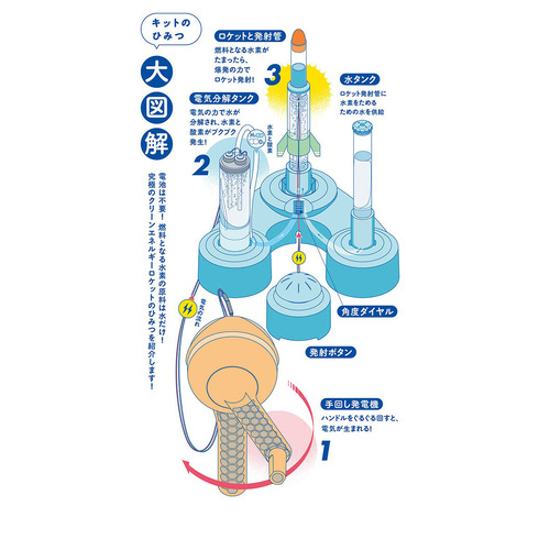 水素エネルギーと宇宙。近未来を感じさせてくれる実験ロケット。手回発電機で水素を発生させ発射。室内で安全に楽しめる。若田光一宇宙飛行士のインタビューや実験アイデアがたっぷりの本誌に加え、大人気のまんがひみつシリーズがまるごと1冊入り。改訂版。【サイズ】A4変 76ページ