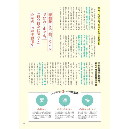 大人女性のライフスタイルに寄り添ったシリーズムック、好評第4弾。身の回りのものや手間や面倒、心の執着、見栄、人間関係などキレイに手放して身軽な人生を始めるコツを専門家や読者のみなさんから集めました。55歳からは「手放し上手」がうまくいく!【サイズ】A4 80ページ