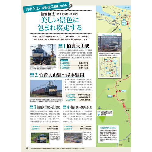 人気のEF64が走る伯備線、中央西線の撮影スポットやその通過時間などを、地図を交えて細かく解説。写真を撮影する際の光の向きや障害物など細かな情報も充実。ファン必見の「見る!撮る!」ための1冊です。