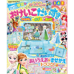 ディズニーのキャラクターといっしょに、もじ・かず・えいごなどを楽しく学べる一冊。付録はマグネットで貼り付けて遊べる、「アナと雪の女王 あいうえお&きせかえトランク」。ほかにもひらがな&カタカナポスター、シールなど盛りだくさん。【サイズ】AB 32ページ