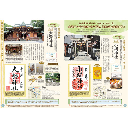 運気アップを目指し、神社へお参りに行こう! 巻頭では御岳山の滝行レポートや23区の御朱印集めモデルルートを特集し、総合運、恋愛運、金運、健康運など御利益別に最強神社の御朱印を紹介。神様プロフィールやQ&Aなど、初心者向けのコンテンツも満載。【サイズ】A5変 144ページ
