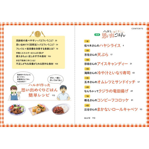 新米の施設調理師が作る懐かしいごはんを通して、思い出をめぐり人として成長していくハートフルストーリー。歳を重ねても楽しく食事がしたい。食べやすく、懐かしいレシピでその人の「食べたい」を叶えるレシピとマンガを兼ね備えた1冊。【サイズ】A5 128ページ