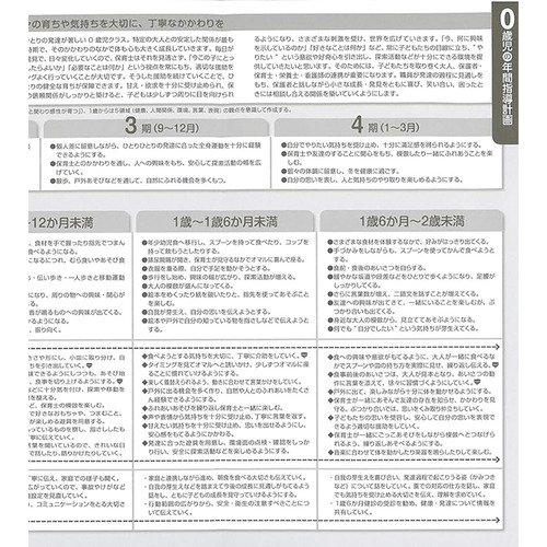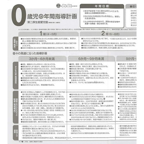 園の実践を追った指導計画と保育資料集。ねらいから実践、反省と評価のポイントがよくわかる。カラーで環境構成紹介の他、0.1.2歳児の発達解説、エピソード記録の書き方なども掲載。保育指針の改定を受け、計画に生かしたい解説を追加。【サイズ】AB 264ページ