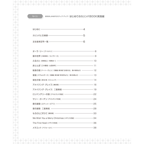 【内容紹介】カリンバ奏者Misaの大人気シリーズに『実践編』が登場! 話題のヒットソングのほか、クラシックの名曲や日本の歌、世界の歌、クリスマス・キャロルなど幅広いジャンルを収載、合奏を楽しめる二重奏曲も加わった曲集です。教則本で学んだ奏法を応用してレパートリーを広げ、高難易度曲マスターを目指しましょう。アンサンブルの心得、特殊な和音の弾き方、変則チューニングの曲について等の解説付きです!(本書には模範演奏動画の二次元バーコードの掲載はありません。MisaのYouTubeチャンネルに順次アップされていますので、そちらをご覧ください)