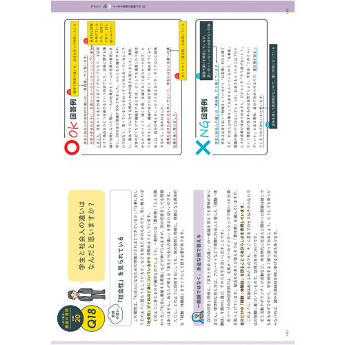 「学生時代に頑張ったことを教えてください」「就活の軸を教えてください」など、面接でよく聞かれる質問を取り上げて、質問の狙いや基本的な答え方などを解説。OK回答例、NG回答例付きなので、ポイントがよくわかります。また、業界別のよくある質問もカバー。