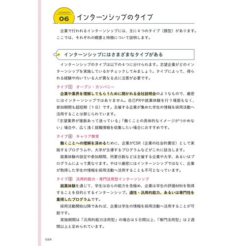 2025年卒から大きく変わったインターンシップの最新事情を掲載。参加するインターンシップの選び方、選考の突破対策、インターンシップ前の準備、インターンシップ中の仕事の基本、内定につなげるインターンシップ後の振り返りなど、1冊でインターンシップのすべてをカバー!