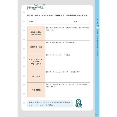 切り離して手軽に持ち運べるブックインブックは、インターンシップ選考~本選考までの行動計画・行動記録を書き込める就活手帳に。フリースペースは10か月分。「今月やるべきアクションプラン」「達成できたこと/できなかったこと」「これからの課題」がひと目でわかる。