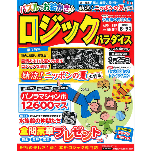 ルールに従ってマス目を塗りつぶすと絵が浮き上がるイラストロジックの専門誌。解きやすいミニサイズの問題から、本格派をうならせる13000マス超ジャンボ問題まで、美しい絵柄のパズルが満載! 全問豪華プレゼントつきです。※定期購読をご希望の方はこちら