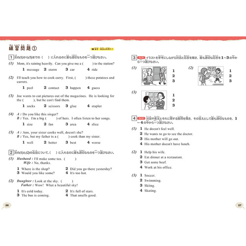 英検3級の過去問を分析し合格のために必要なフレーズを厳選収録した“はじめての英検対策本”。難しい文法解説は一切せず,英検によく出る場面ごとに重要フレーズを紹介する。小学生の英検対策に最適。模擬試験付き。2024年度英検リニューアルにも対応。【サイズ】B5 170ページ
