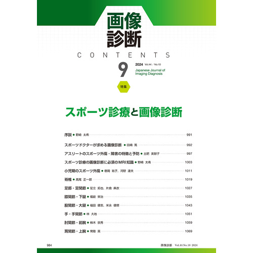 スポーツ診療に関する画像診断を幅広く解説。アスリートのスポーツ外傷・障害の特徴と予防、スポーツ診療の画像診断に欠かせないMRIの知識など、放射線科医がスポーツ診療を克服するための知識が身につき、理解が深まる特集!