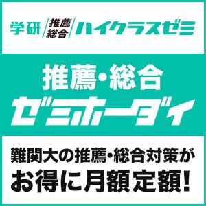 学研推薦・総合ハイクラスゼミ「推薦・総合ゼミホーダイ」では、難関大の学校推薦型・総合型選抜の受験を目指す方ための小論文対策講座、英検対策講座、共通テスト対策講座が月額定額制で自由にご受講いただけます。